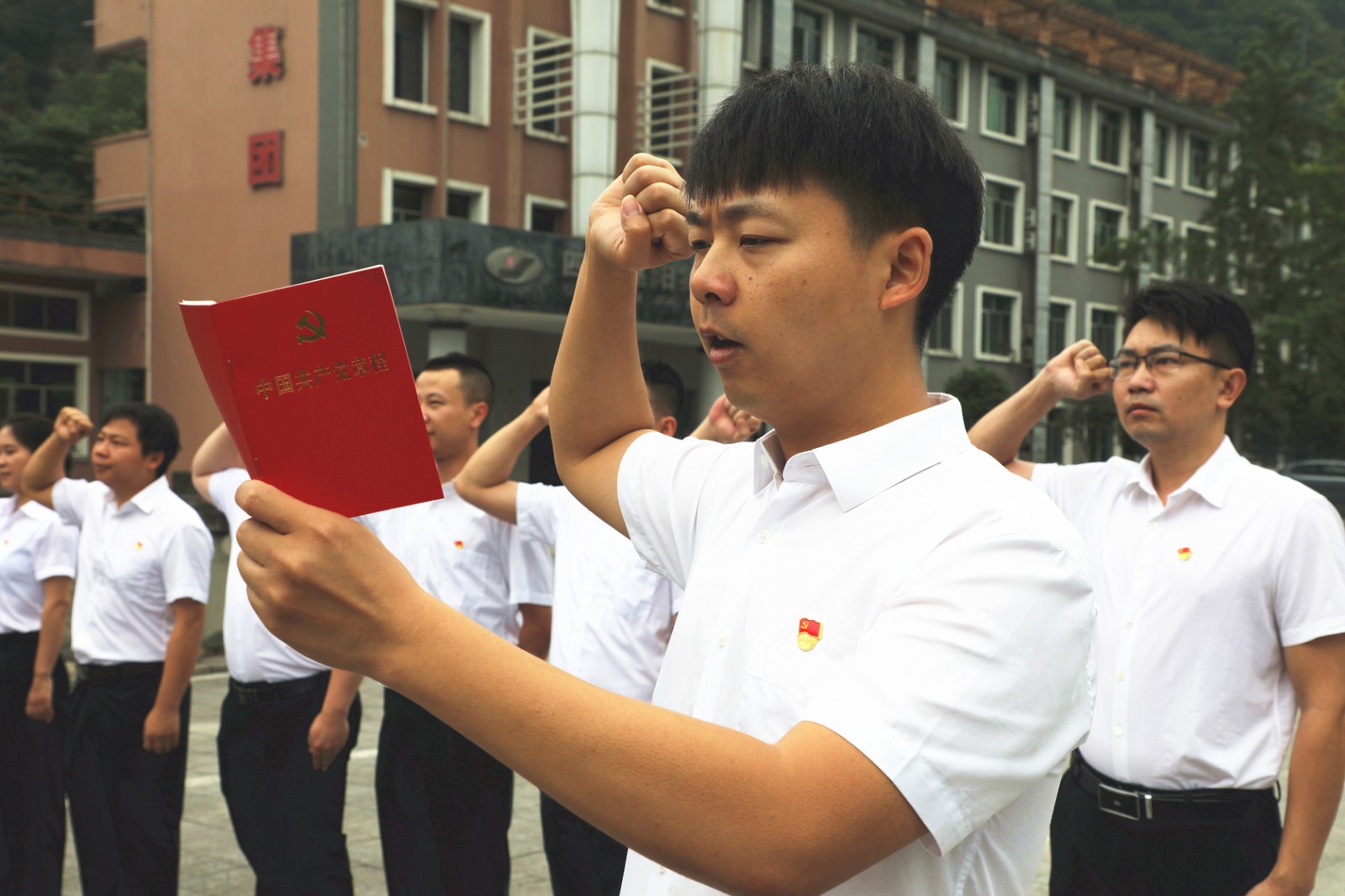 “大家一定要牢记入党的初心……”6月30日,集团公司党委举行新党员入党宣誓仪式,来自机关和基层各单位的8名新党员仰望神圣的党旗,庄严宣誓。