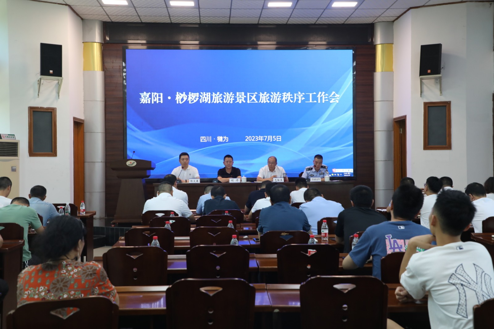 犍为县交通局安全总监刘丹和石溪派出所副所长马斌分别通报了近期犍为县道路交通安全管理工作、景区旅游秩序打非治乱专项整治等开展情况及下一步重点工作,讲解了相关治安法律法规。公安局和交通局将持续做好重大节日、重要时期的旅游秩序检查,严厉打击非法营运等扰乱旅游市场秩序的行为,加大查处力度,维护好嘉阳·桫椤湖景区的旅游秩序,构建良好行业生态和旅游市场环境。