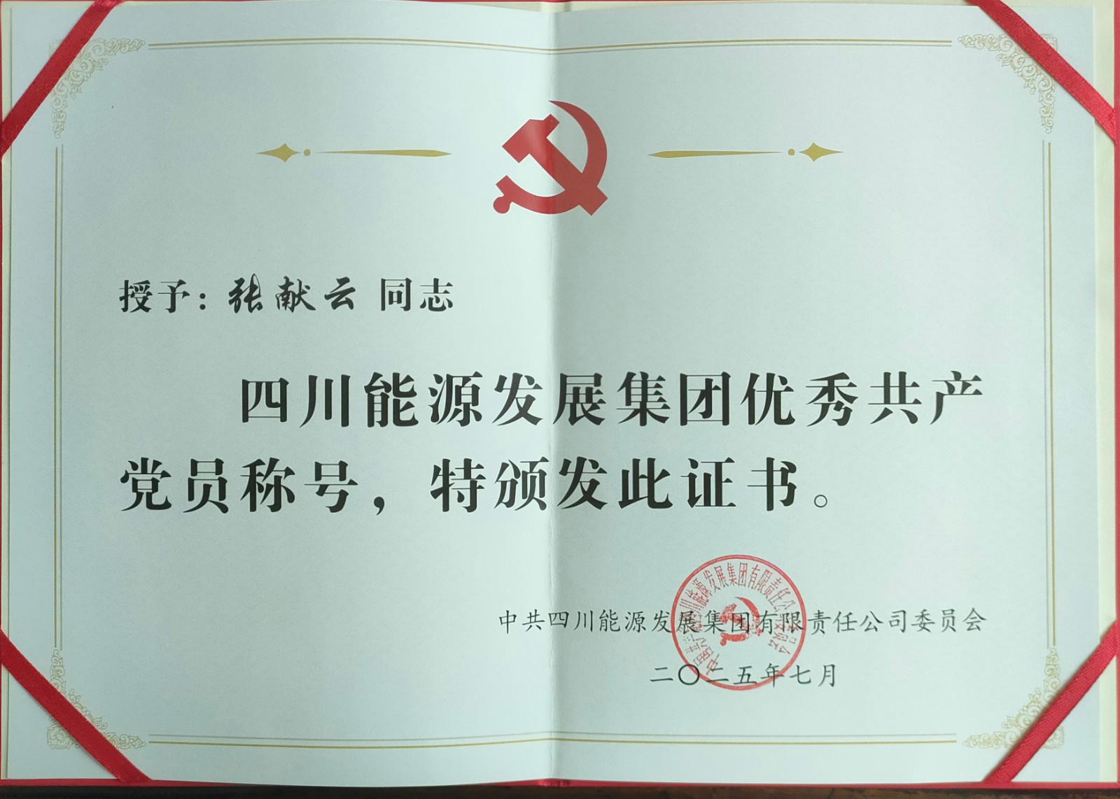 近日,四川能源发展集团表彰2024年度优秀共产党员、优秀党务工作者、先进党组织,万德香、张献云、周学军,采煤一队党支部,喜获表彰。