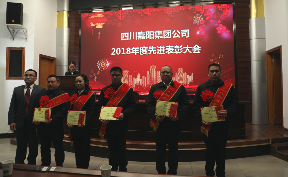 党委书记、董事长杜勤为获得五好党支部的代表颁奖。他们是:物资供销公司党支部,宜宾福溪粉煤灰公司党支部,保卫部党支部,嘉阳煤矿掘进三队党支部,嘉阳煤矿抽采队党支部,嘉阳煤矿通风队党支部。