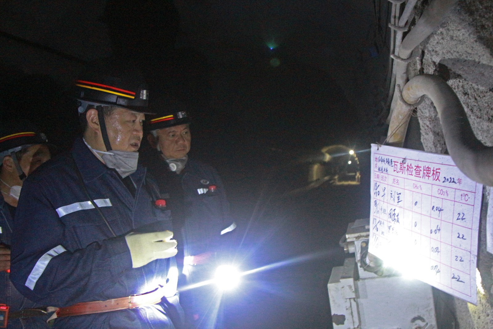 在矿井监控调度中心,王峰副厅长察看了由嘉阳自主研发的瓦斯浓度变化预警平台,与相关技术人员探讨如何拓展数据采集范围,提高综合判定能力和预测结果可靠性,并提出建设性意见。督导组兵分两路,地面一组查看相关资料,另一组深入井下+160m南运输巷智能综掘工作面、11032综采回撤搬迁工作面,重点对瓦斯治理、防治水、设备人员配备等情况进行了检查。
